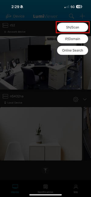 4. After clicking the (+) button then you will choose the SN/Scan option so you can scan the QR Code.