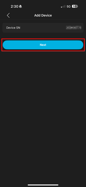 6. After the QR Code scans it will auto populate the serial number and then you can click next to continue the process.