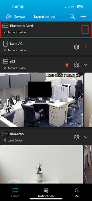 15. Once the user has been successfully added, you can now look inside your Lumiviewer mobile app and you should see the Bluetooth card option appear.