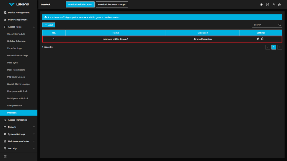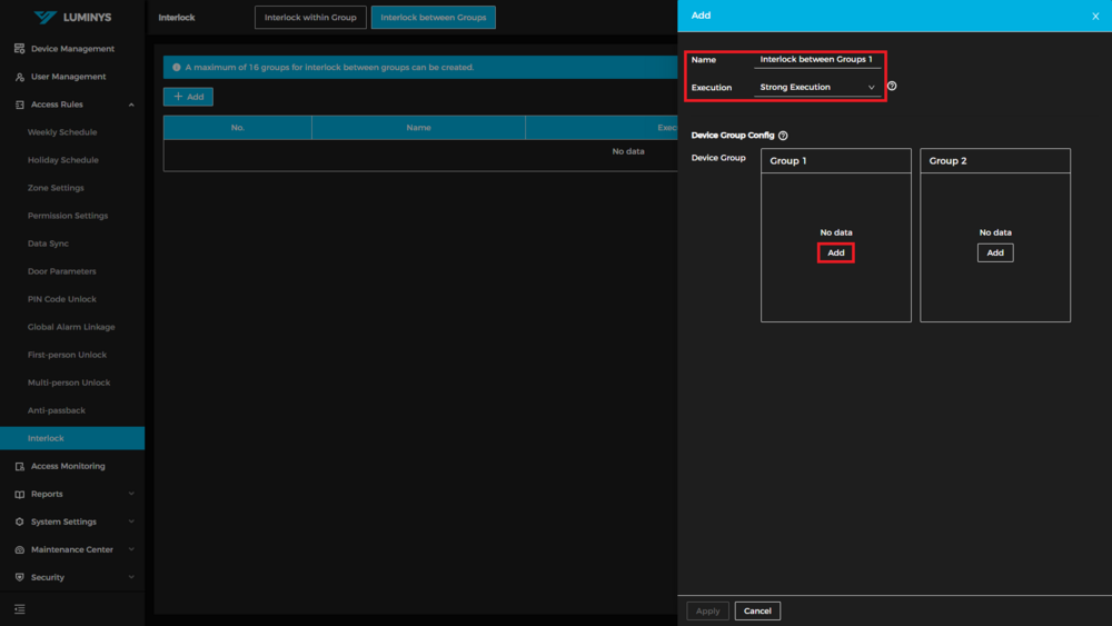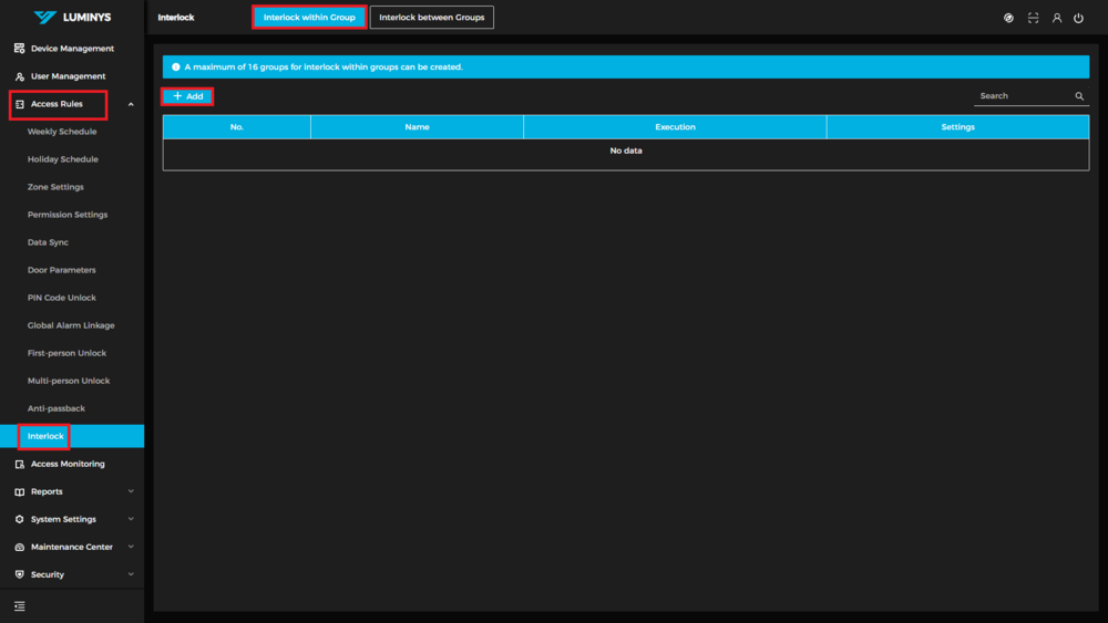 We will cover Interlock Within Group first. Click Add to create an Interlock rule.