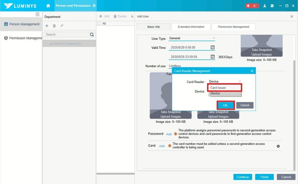 5. Select Card Issuer from the Card Reader drop down menu to tell LumiViewer to use the USB Issuer as the registration device.