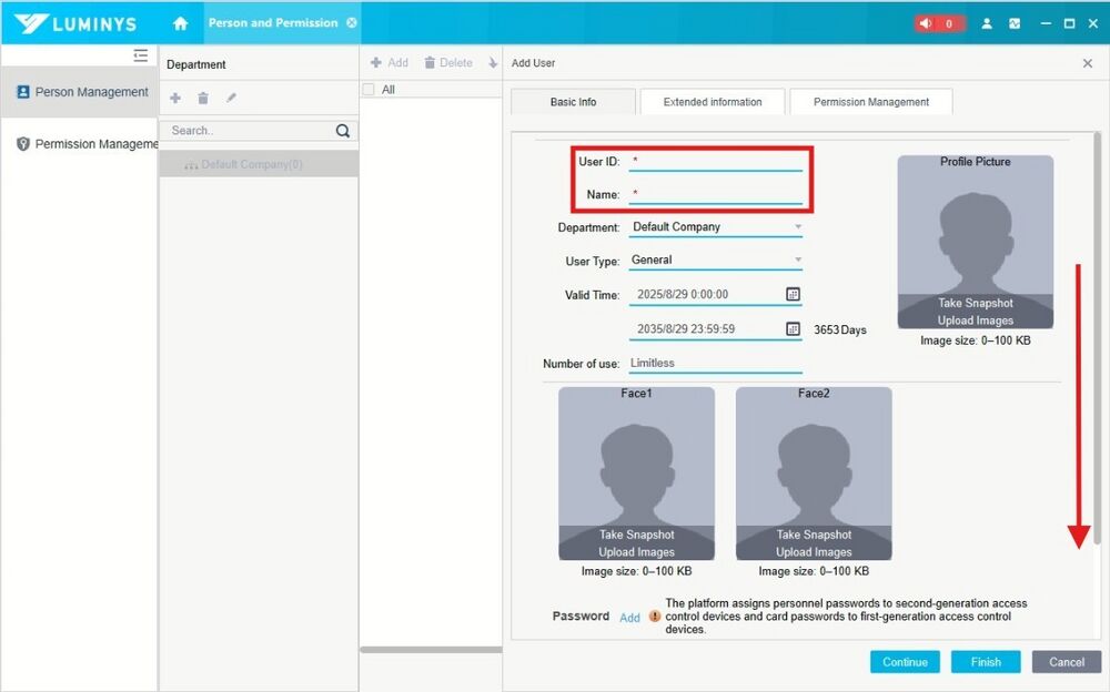 3. Enter a numerical User ID, and provide a Name for the Person, if you are creating a new one.