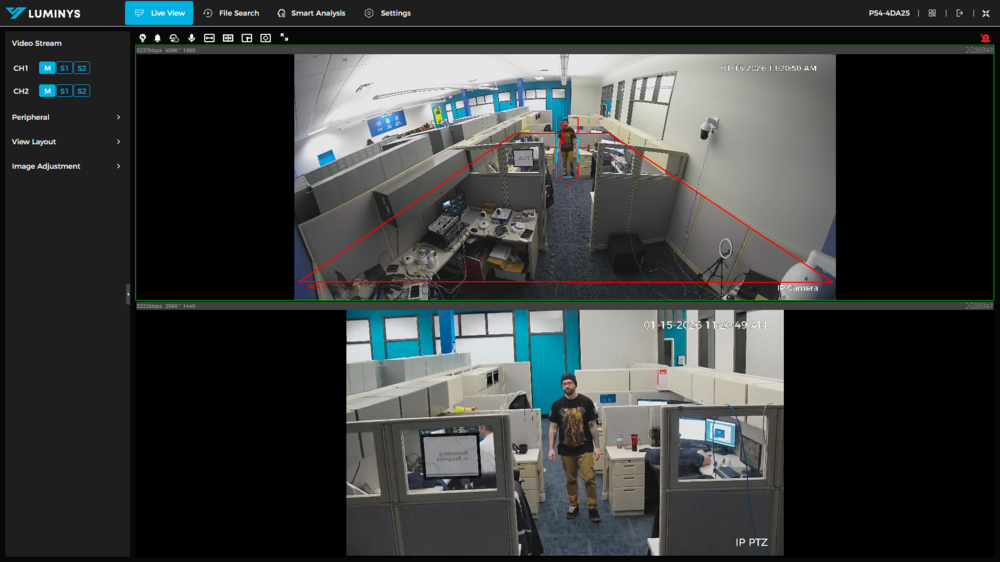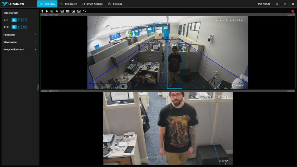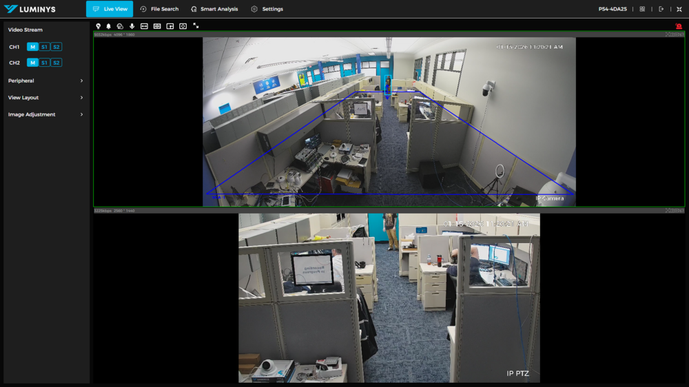 This tutorial will go over how to set up 180° Camera Linkage for Luminys PTZ cameras. This function allows PTZ cameras with 180° panoramic lenses to trigger VCA rules via the static 180° lens, and track the target with the PTZ. This is a more reliable way to track targets without creating multiple presets and blind spots.