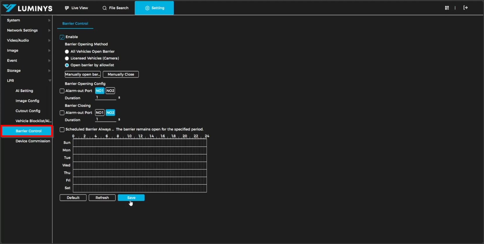 Scheduled Barrier Always... *The barrier can be configured to remain open for an extended period based on a predefined schedule.