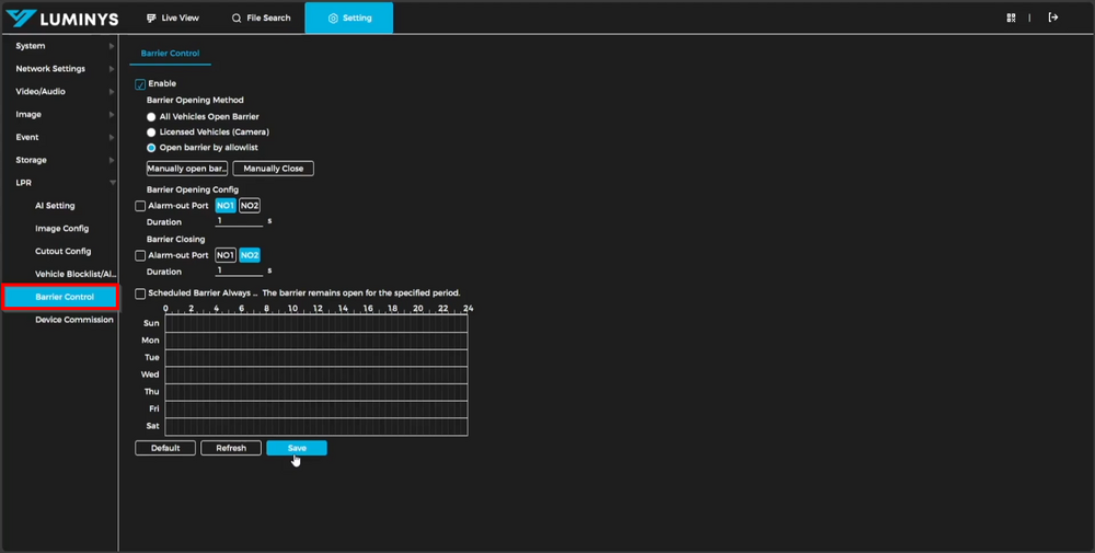 *The Open Barrier by Allowlist setting permits the barrier to open exclusively for vehicles listed in the allowlist.