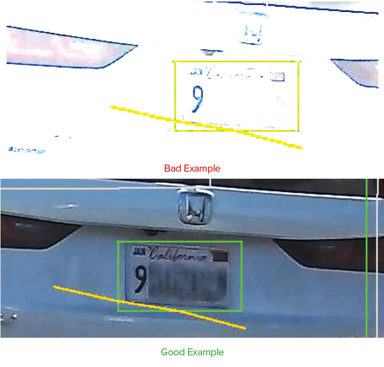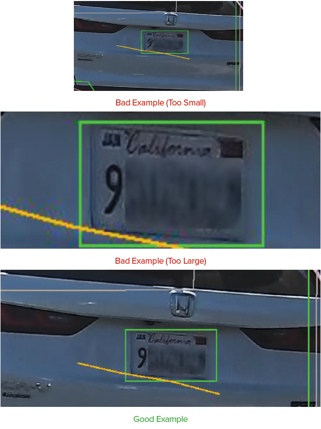 If the license plate characters are too small or too large to be captured, the focal length or distance between the camera and vehicle may need to be adjusted.