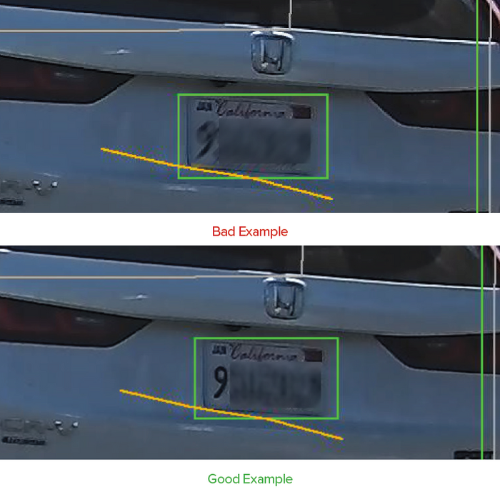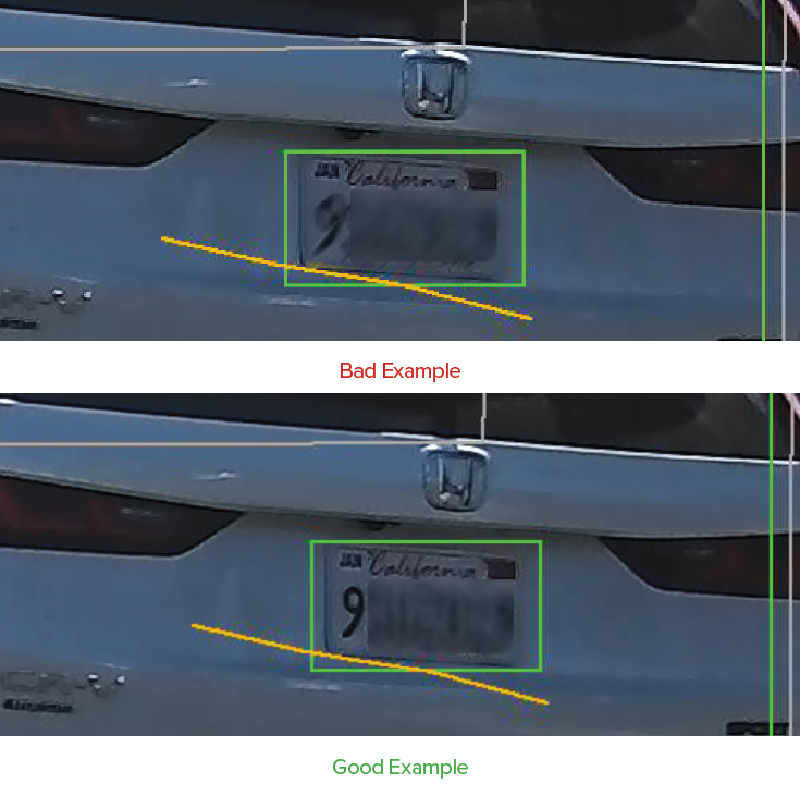 The camera can capture license plates with up to a 5° tilt as shown below.