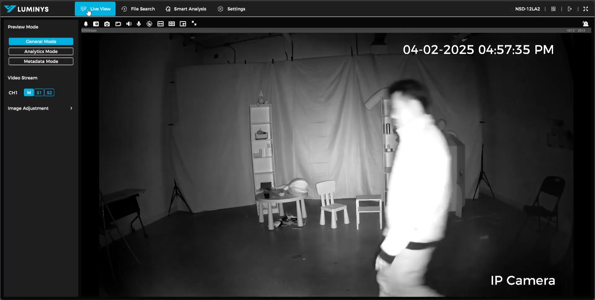 Next let’s go to the live view to see what happens. At first the camera will be displaying in black and white as it will be using the IR when nothing is in the frame.