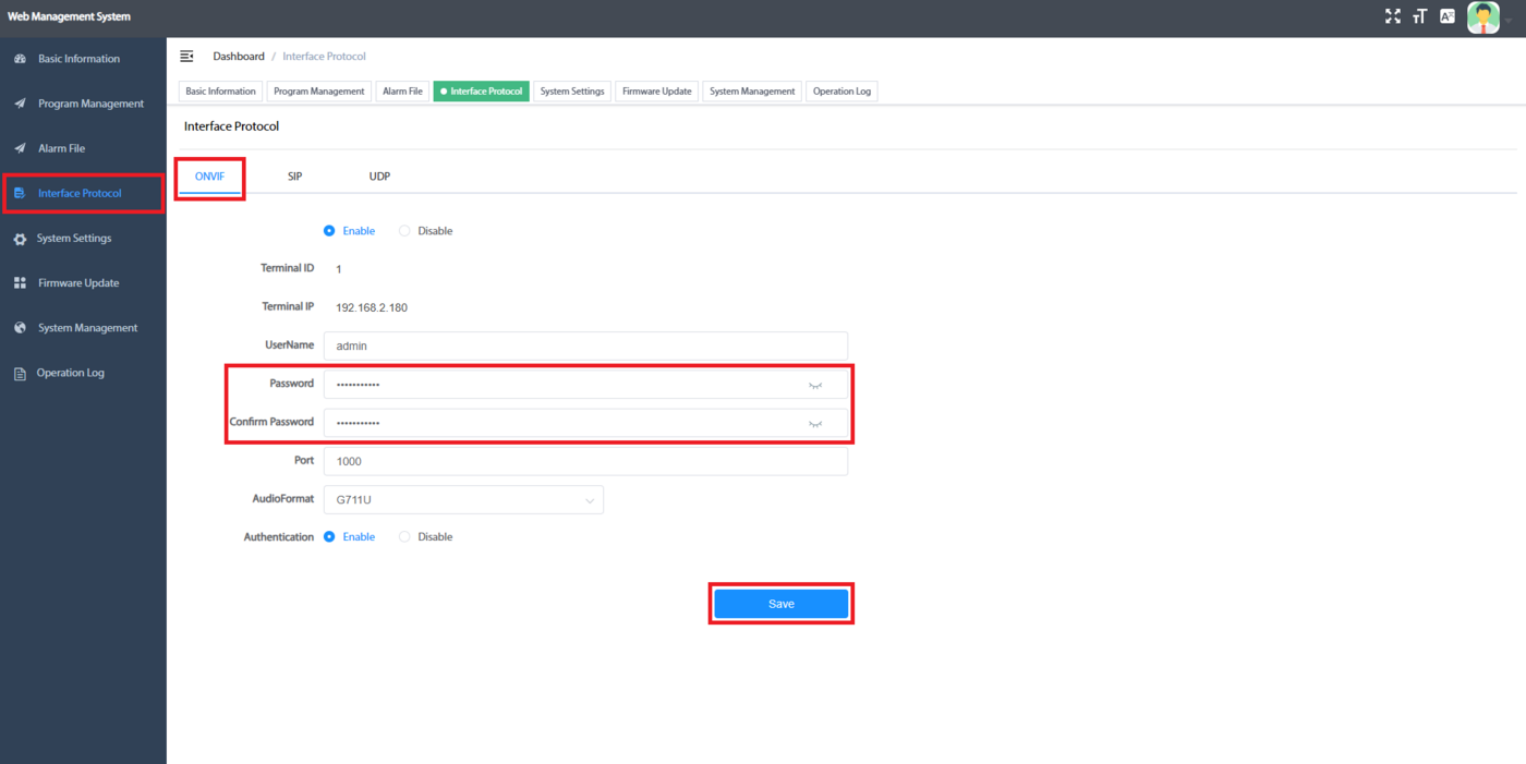Enter an IP address in the Terminal IP field, if you want to change the IP address of the IP Speaker.