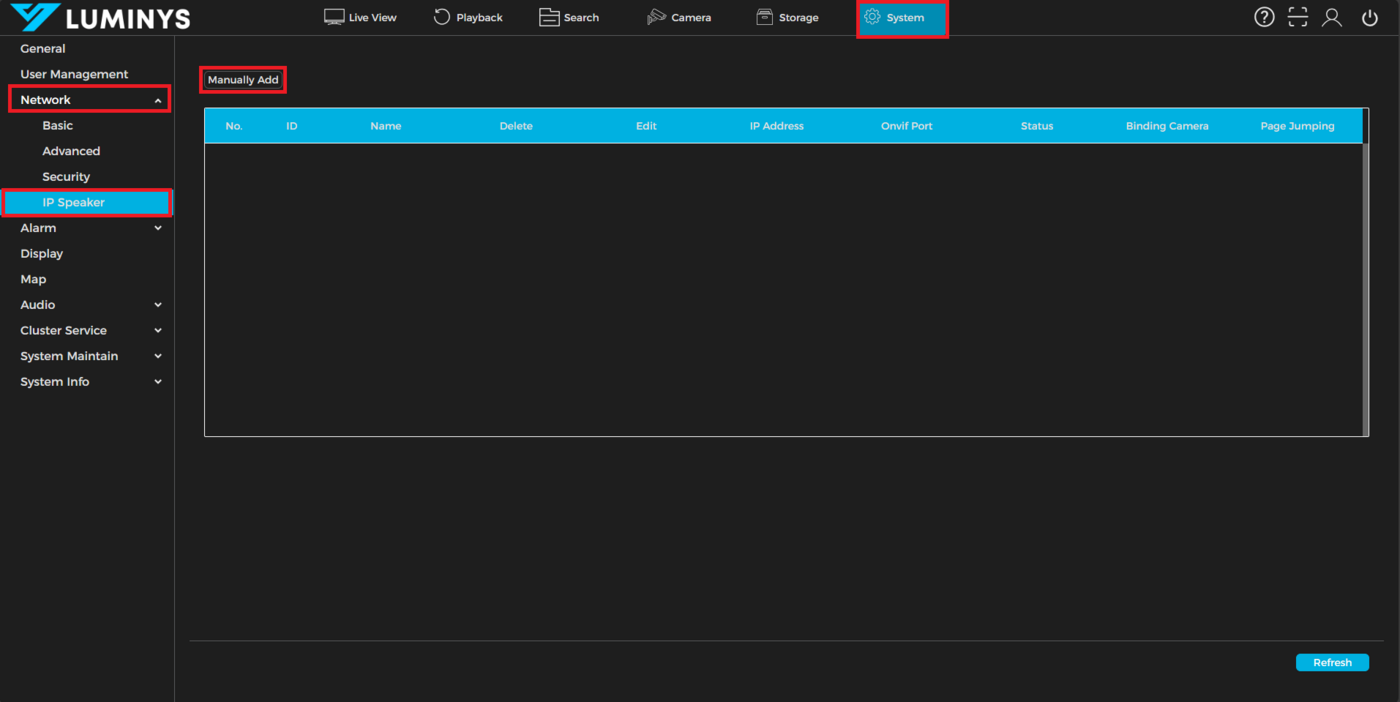 This article will cover how to setup a S-1515A IP Speaker with a Luminys NVR