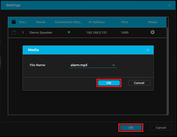 9. Select which audio file, you want to play out of the IP Speaker when the VCA rule is triggered, from the drop down list