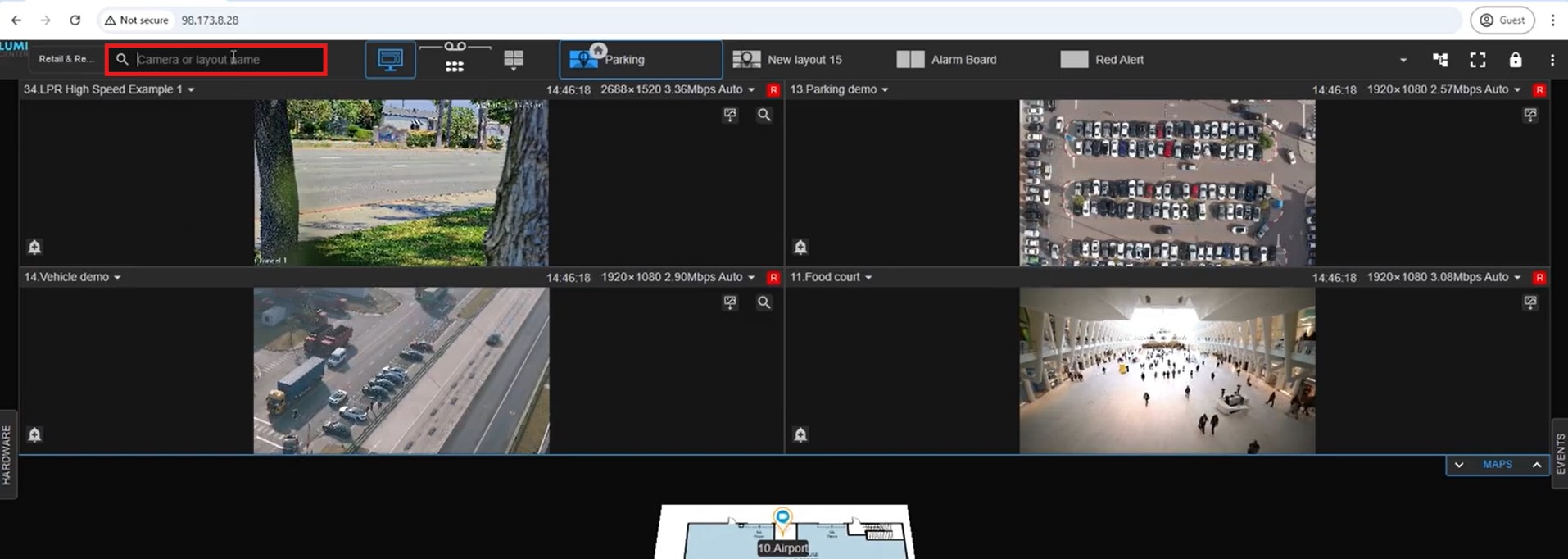 3. Next you have the search bar which can be used to search for a camera or a layout.