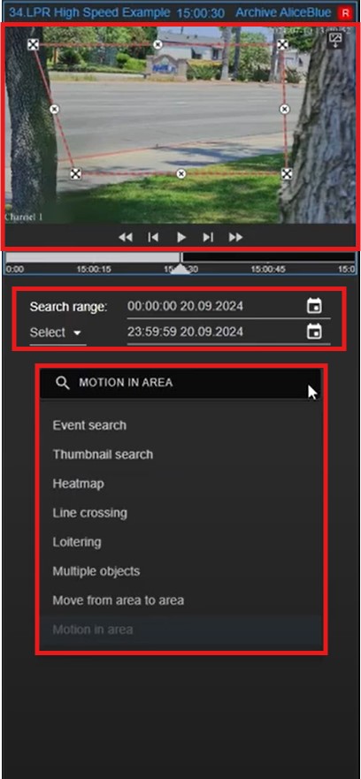 3. After you see the search results you can also make some changes to your search parameters. First you can change your motion detection area by dragging the bounding box with your mouse. Second you can adjust the search time range, and lastly you can change what you are searching for such as “Heat Map” “line Crossing” etc.