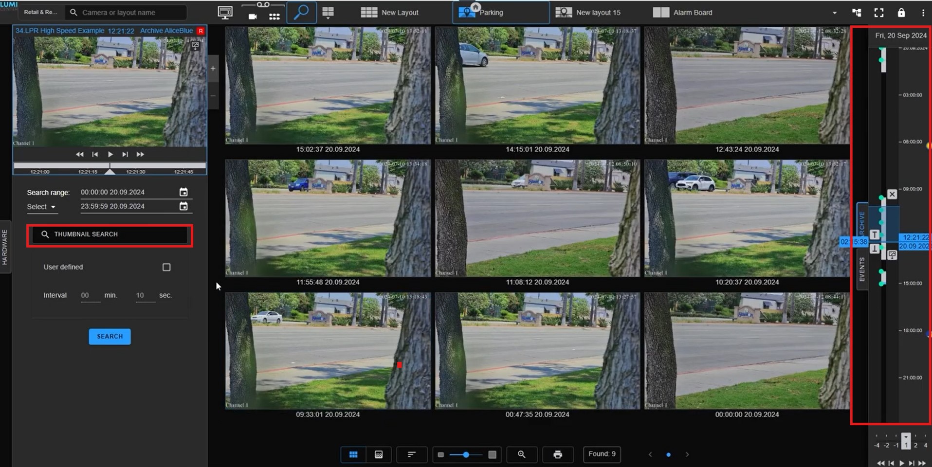 6. As an example we will do a “Thumbnail search”, this will search within a range defined by you. After you perform the search you can see it breaks up the recording into multiple clips so you can better determine what time you need to look at to find something you are looking for.