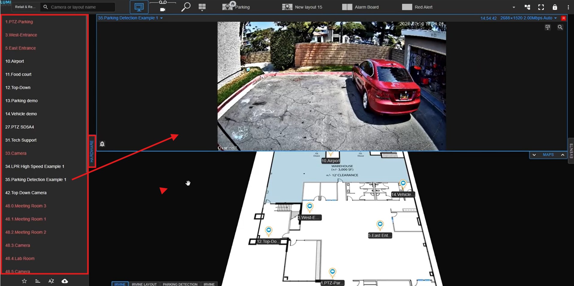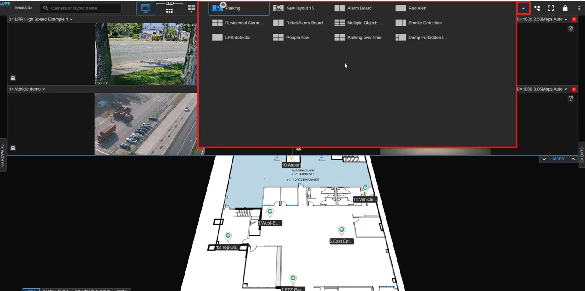 2. One of the main functions while using live view will be the ability to switch layouts. You can use the drop down highlighted in the picture to see the different layouts that you have created already and switch between the layouts.