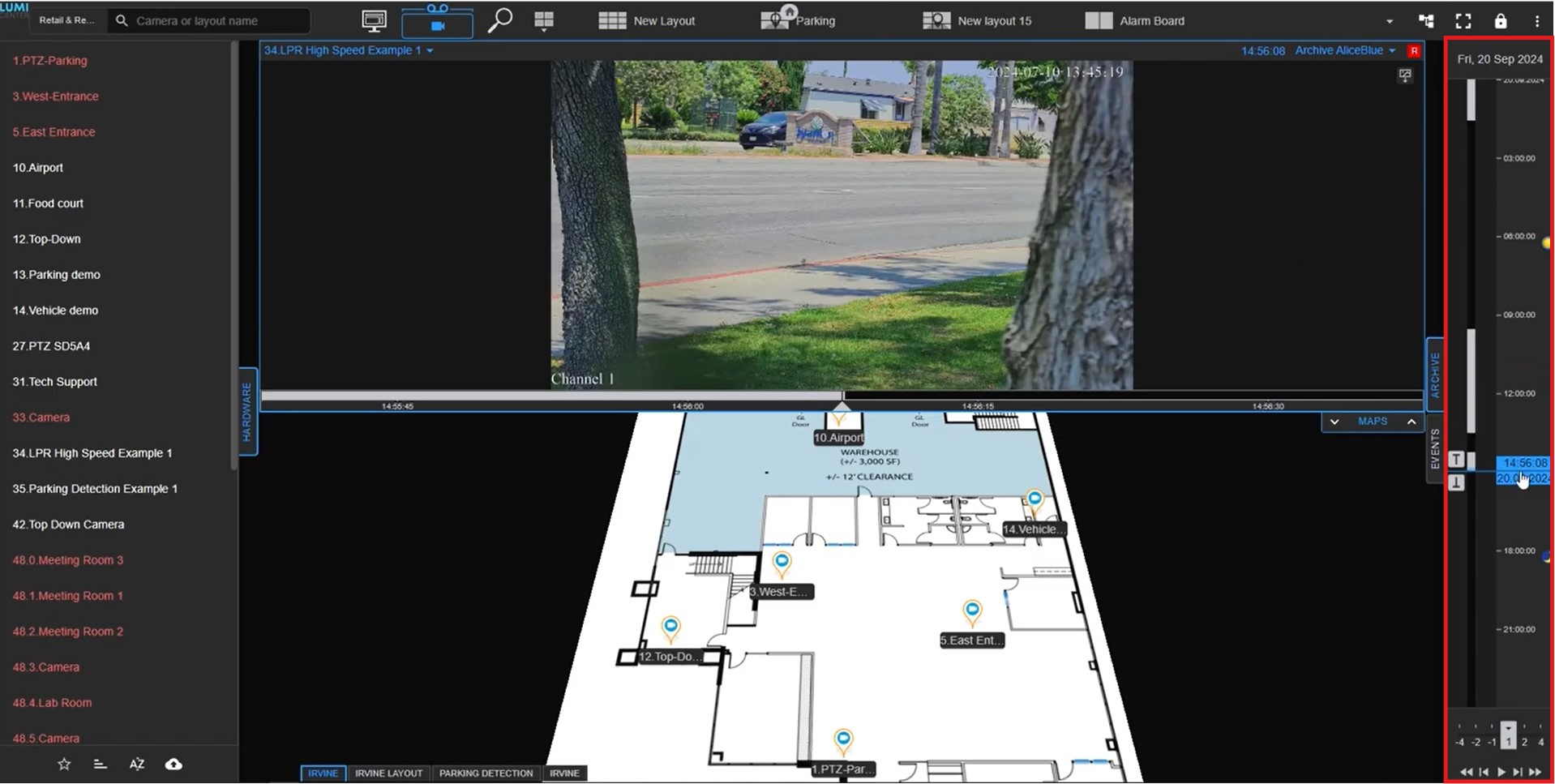 7. Also if a camera is recording to multiple archives simultaneously, you can click the archive button on the video stream which I have highlighted in the picture to change the archive you are playing back from. This step concludes the live view and playback from within LumiCenter Web Client.