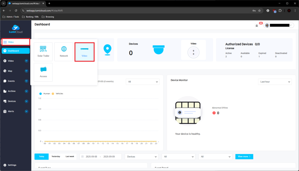 1. Start by logging in to your account and selecting the appropriate device type from the menu on the left.
