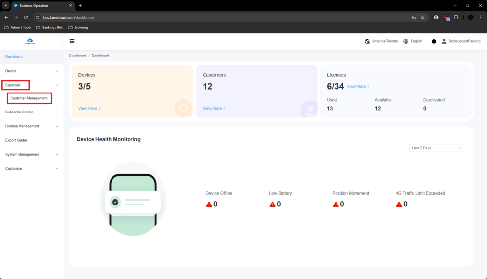 1. Log in to your LumiCloud LumiPartner account and select Customer Management from the Customer drop down menu on the left.