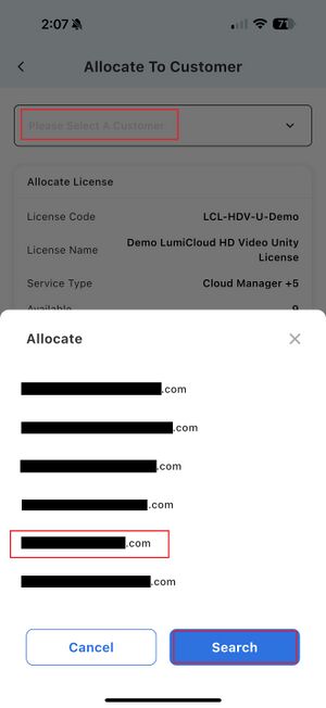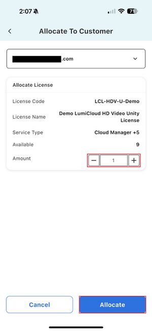 LumiCloud/Allocate Licenses to a User via LumiPartner Mobile App