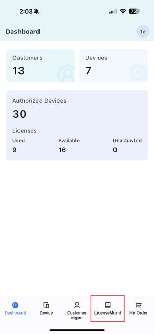 1. The first step will be to open up the LumiPartner app and log in. Once logged in, the first place you want to go to is LicenseMgmt along the bottom.