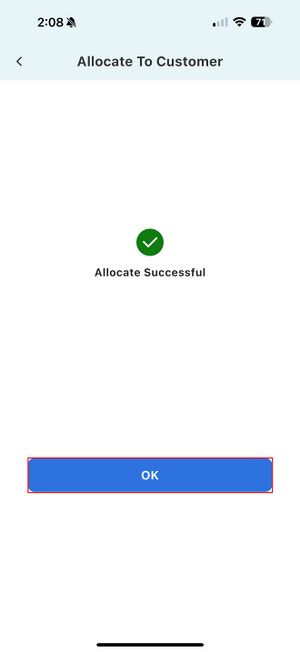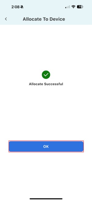 7. After clicking Allocate, you should be brought to the screen that confirms that it was allocated successfully. Press OK to finish. This concludes how to add directly to a device, next we will show how to add to a customers account and then how they would apply the license.