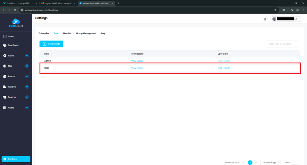 5. You will now see the newly added Role on your account page and can now use that Role when creating LumiCloud members.