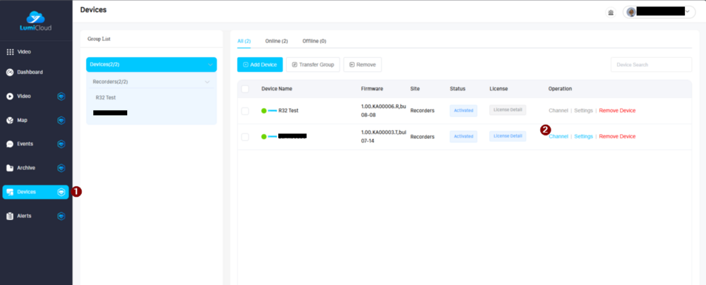 2. Select Devices on the left, and you should now see a your authorized devices. From here, select Channel for the device you wish to set up with iMD.
