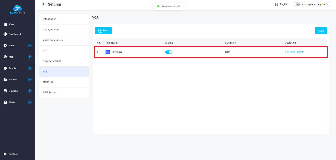 LumiCloud/VCA Setup for a D2C Camera via LumiCloud Web
