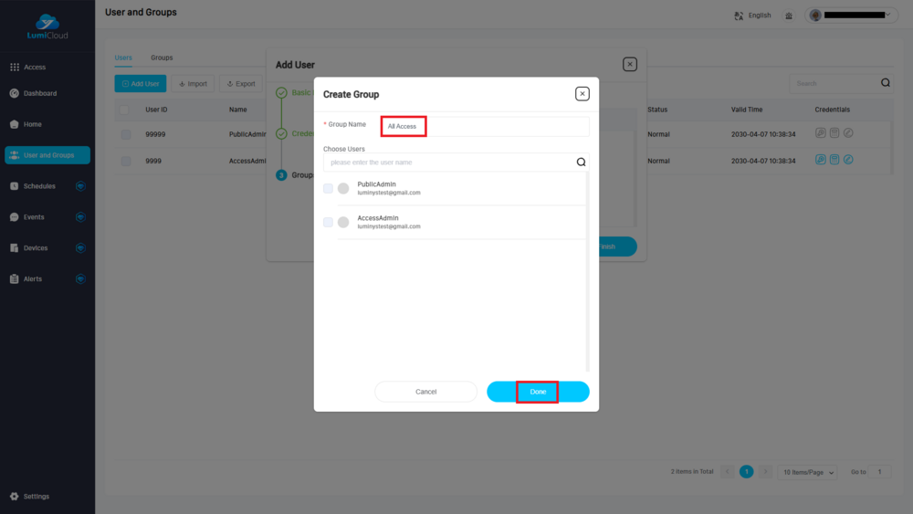 This tutorial will go over on how to set up a Luminys Access Controller via LumiCloud website. It will cover creating users, groups, and schedules, the three core components of access control function. The guide will cover as if the unit is newly added to LumiCloud and has not been modified otherwise.