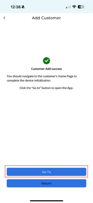 5. After clicking on confirm, it will take you to a page confirming that the customer has been added successfully. Next if you want to launch into that user account to complete the remainder of the setup of the account you can select the “Go To” option at the bottom.