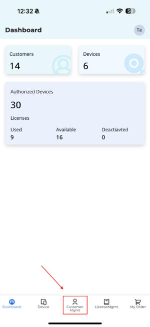 2. Once signed into the partner app, you will want to navigate to the “Customer Mgmt” section along the bottom.