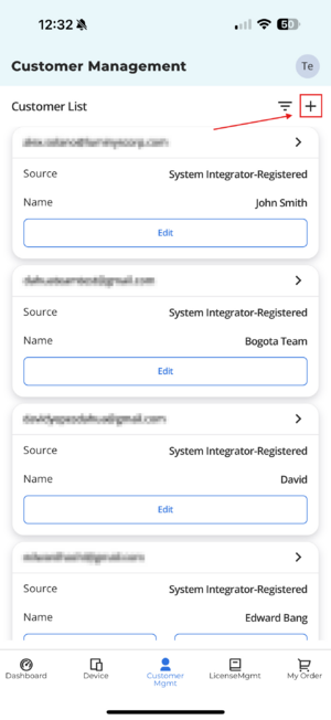 3. Once on the customer management page you will see any user accounts you have already created or have attached to your partner account. To get started creating a new user account, go ahead and click the (+) button in the top right corner.