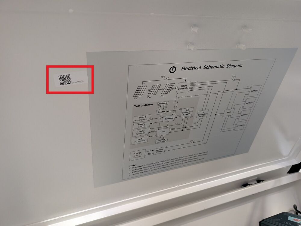 2. Locate the sticker with the QR Code and Serial Number to the left of the Electrical Schematic Diagram on the inside of the lid of the electrical box.