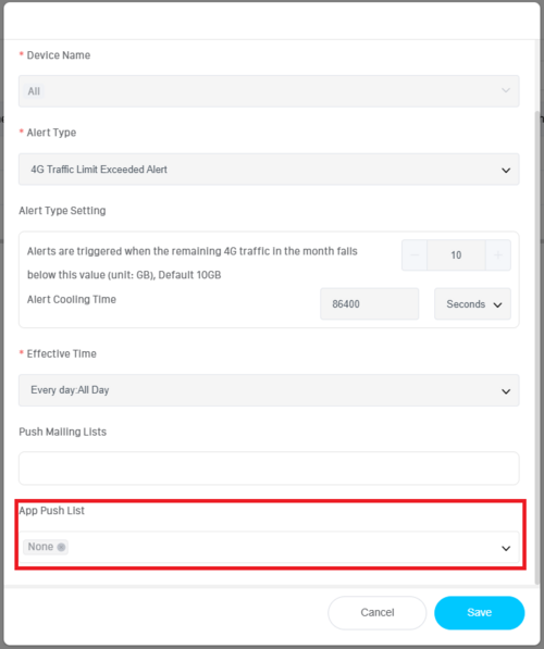 If you want the alert to be sent to all user's mobile apps, check the box next to All User
