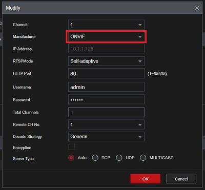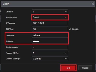 Repeat steps 6-9 for any other Luminys cameras that are having connection issues and the Manufacturer is not set to Smart