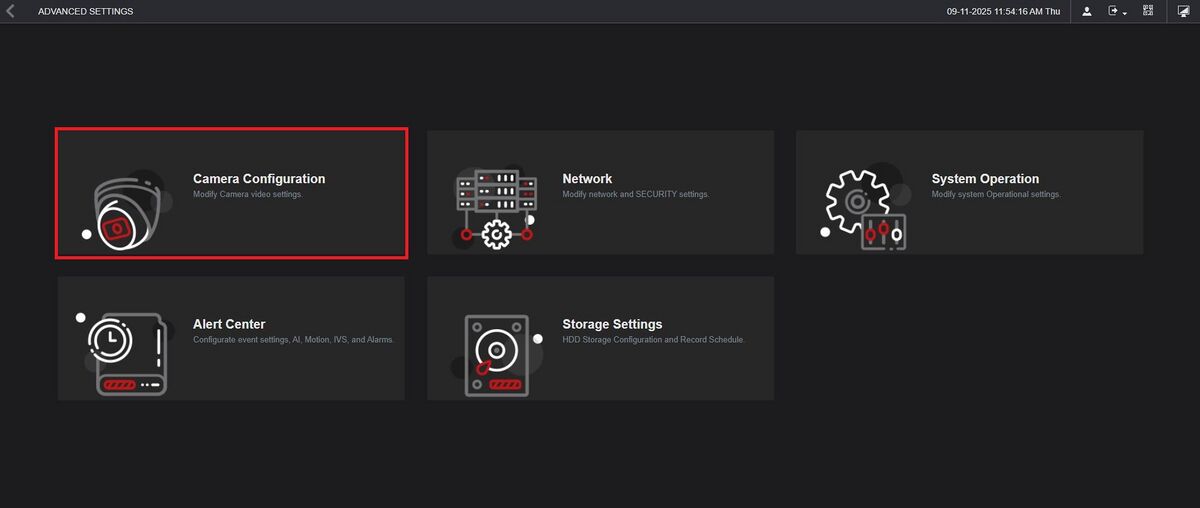 5. Click on Camera Configuration