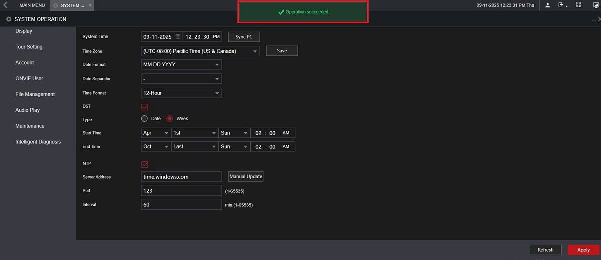 14. Once the changes have been saved, you will see Operation succeeded at the top