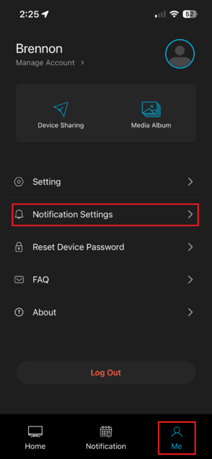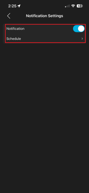 Note: As mentioned, this is strictly available for LumiViewer accounts. If you do not have the option for Notifications in the Me tab, you must sign in. Also note that if your global schedule does not cover a custom schedule for the camera, the global schedule takes priority.