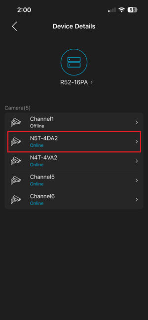 2. Select the camera you want to receive notifications for.