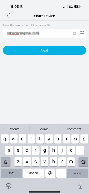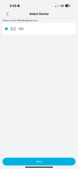 4. On the next page you will be asked to input the email address for the account you would like to share the device with. Enter the users email address they registered for LumiViewer with, and tap Next.