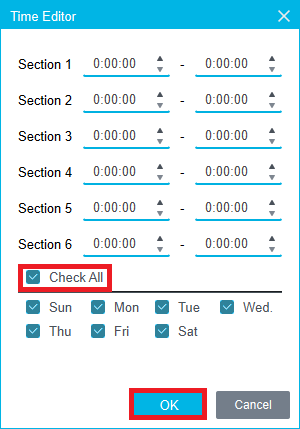 3. Check the Check All box to copy that schedule to all other days, and click OK.