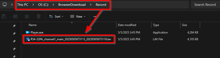 2. Upon completion of the download, access the specified computer directory where the file has been saved (for example, C:\BrowserDownload\Record in this case).