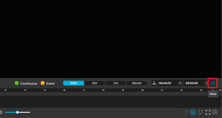 2 a. Once you click the button, there will be a small white triangle on each end of your cameras time bar. Click and drag these to the start and end time stamps for the video you wish to save.