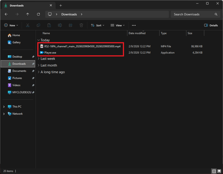 8. Open the location you saved the video to see your file. Regardless of chosing MP4 or LAV, a copy of the LumiPlayer software will be included with your download for convinience. The videos will be named based on the recorder name, channel name, stream type, and start/end times.