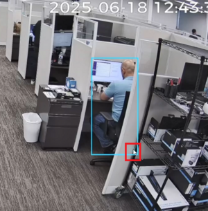 Pink lines indicate the targets current movement between cameras in sync with the event playback.