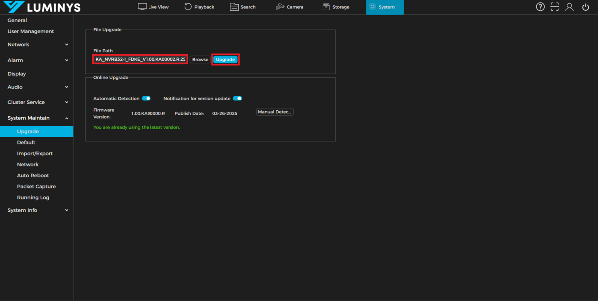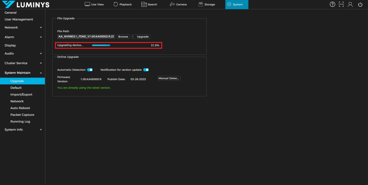This article will cover how to upgrade firmware on an NVR via the WebGUI