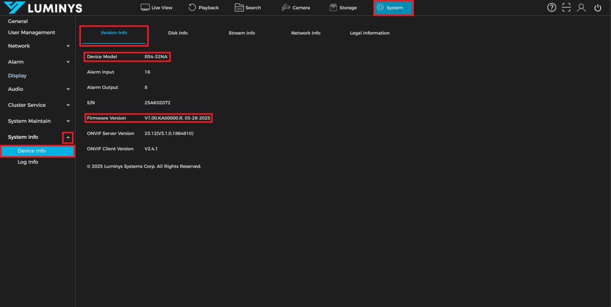 Verify the NVR's Build Date, next to Firmware Version, matches the Build Date of the latest firmware that you downloaded.