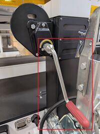6. Store the hand crank. Then replace the yellow support access and lock it back into position with the keys.